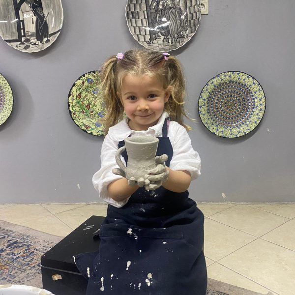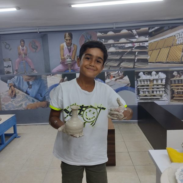 A) 2 saatlik etkinliğimizde, kendi tabağınızı veya karo nuzu tasarlamayı seçebilir veya önceden çizilmiş bir tasarımı seçip canlı renklerle hayata geçirebilirsiniz. İşiniz bittiğinde, şaheserinizi ozel verniklenip, size teslim edeceğiz. Ayrıca, bir çömlekçi çarkında kili şekillendirmeyi deneyebilirsiniz!